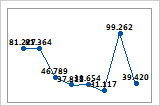 Label one or more data display elements with y-values, row numbers, or values from a column. For example, the outliers in the following boxplot are labeled with the corresponding row number. The median lines are labeled with the medians (y-values).