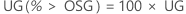 Sowohl die Anzahl der Teile pro Million über der oberen Spezifikationsgrenze (PPM > OSG) als auch der Prozentsatz über der oberen Spezifikationsgrenze (% > OSG) ergeben sich aus der Wahrscheinlichkeit, dass ein Teil über der Spezifikationsgrenze liegt (P(x > OSG)).