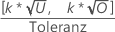 Wenn U und O die Untergrenze und die Obergrenze einer Varianzkomponente darstellen, ist das Konfidenzintervall für die entsprechende prozentuale Toleranz: