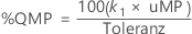 Wenn nur eine Spezifikationsgrenze angegeben ist, entspricht die prozentuale Toleranz der halben Streuung in der Untersuchung für jede Komponente dividiert durch die einseitige Toleranz. Die einseitige Toleranz ist der absolute Wert der angegebenen Spezifikationsgrenze subtrahiert vom Durchschnitt aller Messwerte.