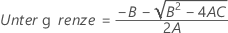 Die Untergrenze und die Obergrenze für ein approximiertes (1 – α) * 100%-Konfidenzintervall werden durch Lösen von quadratischen Gleichungen berechnet.