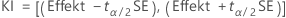 Das Konfidenzintervall (KI) für Äquivalenz für die einzelnen Effekte wird mit der folgenden Formel angegeben: