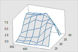 Minitab plots response (z) values at the x-y intersections of an evenly-spaced mesh. If your x- and y-values are evenly spaced, Minitab plots the z-values at the x-y intersections. If your x- and y-values are not evenly spaced, Minitab interpolates (estimates) the z-values at the intersections of a regular 15 by 15 mesh with the same x- and y-ranges as your data.