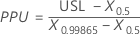 PPU is calculated using the parameter values you specify or is estimated using maximum likelihood method for a distribution used in the analysis. Minitab calculates the PPU statistic using either the Z-Score method (default) or the ISO method, depending on the settings that are selected in . The following formulas are based on the default tolerance of K = 6, which is 6 standard deviations wide (3 standard deviations on each side of the process mean).