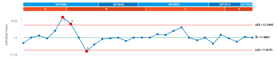 The subgroup descriptors of Lot Number and Shift Identifier have markers.