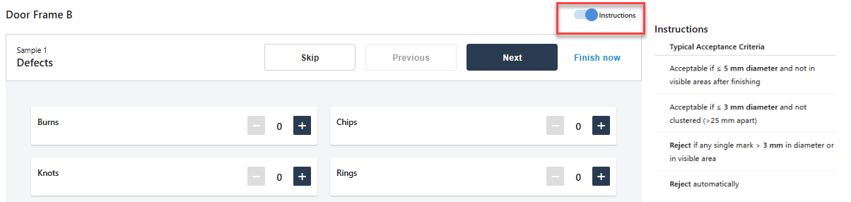 For more information on the collection methods and detail on how to change the default collection method by sampling plan, go to Overview of data collection methods for sampling plans.