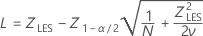 Los intervalos de confianza para P(x > LES) vienen dados por las siguientes fórmulas: