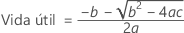 Si se cumplen las tres condiciones, Minitab calcula la vida útil. Para calcular la vida útil, utilice la ecuación cuadrática.