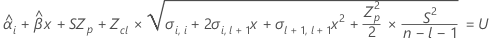 Si la respuesta aumenta con el tiempo, entonces Minitab calcula la vida útil en relación con el límite de especificación superior. Esta fórmula da la condición cuando la respuesta aumenta: