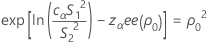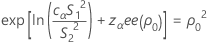 donde cα/2 es una constante niveladora (descrita a continuación) y ee(ρ) es el error estándar de la curtosis agrupada (descrito a continuación). Por lo general, esta ecuación tiene dos soluciones, una solución L < S1 / S2 y una solución U > S1 / S2. L es el límite de confianza inferior y U es el límite de confianza superior. Para obtener más información, consulte el Método de Bonett, que es un artículo técnico con simulaciones y otras informaciones sobre el Método de Bonett.