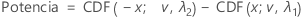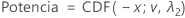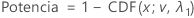 donde CDF( x; v , λ) es la función de distribución acumulada, evaluada en x, para una distribución t no central con parámetro de no centralidad, λ , y v grados de libertad.