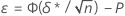 Para valores dados de n, α, P y α *, el margen de error, ε, para un intervalo unilateral se obtiene resolviendo primero δ* en la siguiente ecuación: