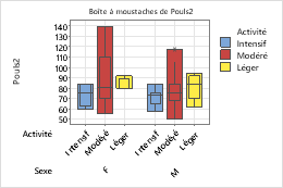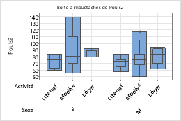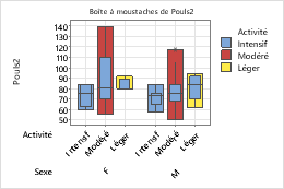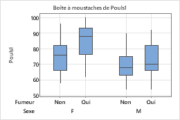 La procédure ci-dessous permet d'ajouter différents attributs à une variable de regroupement dans une boîte à moustaches, qui contient des boîtes d'étendue interquartile (EIQ) et d'étendue.