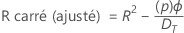 Le R2 ajusté de la somme des carrés d'écart rend compte du nombre de prédicteurs du modèle et est utile pour comparer des modèles avec un nombre de prédicteurs différents. La formule est la suivante :
