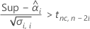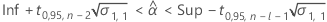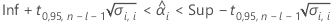 ![]() | valeur de la fonction de répartition inverse à nc issue de la loi T à dl degrés de liberté |