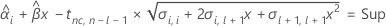 Lorsque l'effet du lot et l'interaction Lot*Durée se trouvent dans le modèle, la valeur ajustée du ie lot au moment xij est déterminée à partir du modèle suivant :