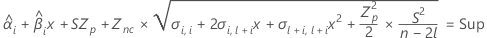 Lorsque l'effet du lot et l'interaction Lot*Durée se trouvent dans le modèle, la valeur ajustée du ie lot au moment xij est déterminée à partir du modèle suivant :
