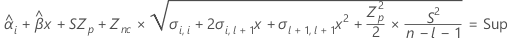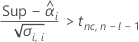 ![]() | valeur de la fonction de répartition inverse à 0,5+nc/2 issue de la loi T à dl degrés de liberté |