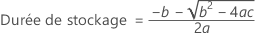 Si les trois conditions sont vérifiées, Minitab calcule la durée de stockage. Pour calculer la durée de stockage, utilisez l'équation quadratique.