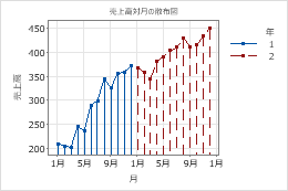 Minitabはグラフにグループを表示するいくつかの方法を提供していますが、グラフまたはワークシートの配置によっては使用できないオプションもあります。