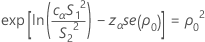 데이터가 정규 분포를 따르는 경우 Minitab에서는 다음 공식을 사용하여 모집단 표준 편차 사이의 비율(ρ)에 대한 신뢰 한계를 계산합니다. 모집단 분산 사이의 비율에 대한 한계를 구하려면 아래 값을 제곱하십시오.