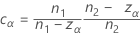 αL 및 αU를 찾는 것은 L(z , n1 , n2 , S1 , S2 ) 및 L(z , n2 , n1 , S2 , S1 ) 함수의 제곱근을 찾는 것과 같으며, 여기서 L(z , n1 , n2 , S1 , S2)는 다음과 같이 계산됩니다.