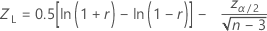 ρ의 (1− α)100% 양측 신뢰 구간은 (ρL, ρU)이며, 여기서 하한인 ρL과 상한인 ρU는 다음을 따릅니다.