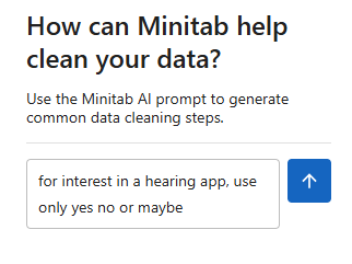A tecnologia de IA pode cometer erros. É responsabilidade do usuário garantir que a saída seja precisa, apropriada e atenda aos padrões e requisitos da sua organização. Para obter mais informações, consulte a Central de confiança da Minitab.