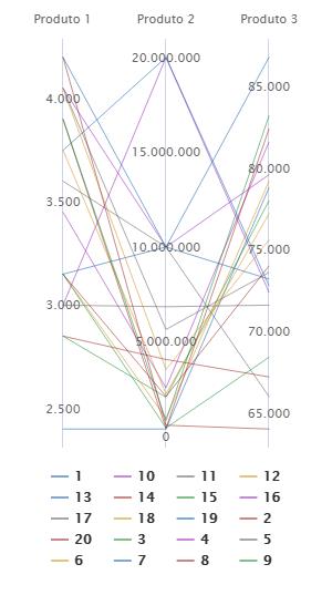 | Fábrica | Produto 1 | Produto 2 | Produto 3 |