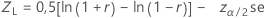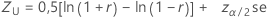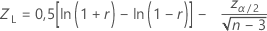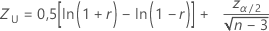 O intervalo de confiança bilateral (1- α) 100% para ρ é (ρL, ρU), onde o limite inferior, pL, e o limite superior, pU, seguem: