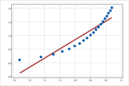 使用概率图可以评估分布与数据的拟合度、估计百分位数以及比较样本分布。概率图显示每个值以及样本中小于或等于该值的值所占的百分比。可以变换 y 轴,以使拟合分布形成一条直线。