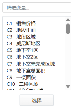 此对话框中的列列表包含 78 列。请在 筛选变量 框中输入文本,以按名称筛选变量列表。