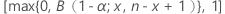 B(1 − ; a, b) | 下,1 - 参数 a 和 b的β分布百分位数 |