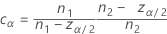 | t α | 自由度为 n1 + n2 – 2 的 t 分布的 α 临界值 |
