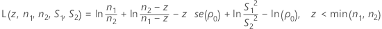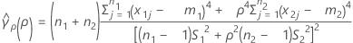 当 n1 = n2 时,检验统计量为 Z2。如果原假设 ρ = ρ0 为真,则 Z2 将服从自由度为 1 的卡方分布。Z2 的计算公式如下所示: