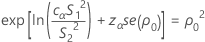 其中,cα/2 是均衡器常量(在下面描述),se(ρ) 是合并峰度的标准误(在下面描述)。通常,该方程有两个解,一个解 L < S1 / S2,另一个解 U > S1 / S2。L 是置信下限,U 是置信上限。有关更多信息,请转至 Bonett 方法(这是一本白皮书,其中包含有关 Bonett 方法的模拟和其他信息)。